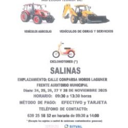 La semana del 24 al 28 de noviembre estará en Salinas la unidad móvil agrícola ITV para la inspección técnica de vehículos agrícolas y de obras y servicios.