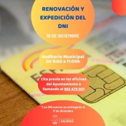 El día 16 de diciembre de 2025 la Unidad Móvil del DNI estará en Salinas, concretamente en el Auditorio Municipal, en horario de 9:00 a 11:00h.