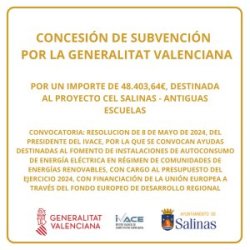 La Generalitat Valenciana ha concedido al Ayuntamiento de Salinas una subvención destinada al proyecto Cel Salinas - Antiguas Escuelas.