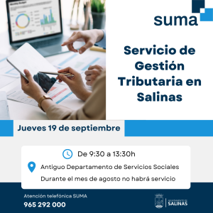 📋 El servicio de Suma Gestión Tributaria volverá a estar disponible en nuestro municipio en el mes de septiembre.