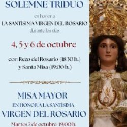 Con motivo de la celebración del día de Nuestra Señora La Virgen del Rosario el martes 7 de octubre, se van a celebrar varias misas y rezos en su honor durante los días 𝟰, 𝟱 𝘆 𝟲.