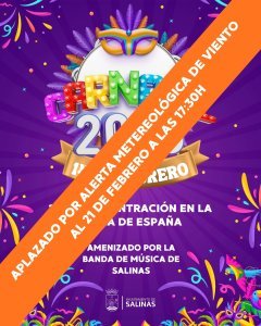 APLAZAMIENTO DE LOS ACTOS DEL CARNAVAL POR ALERTA METEREOLÓGICA POR VIENTO